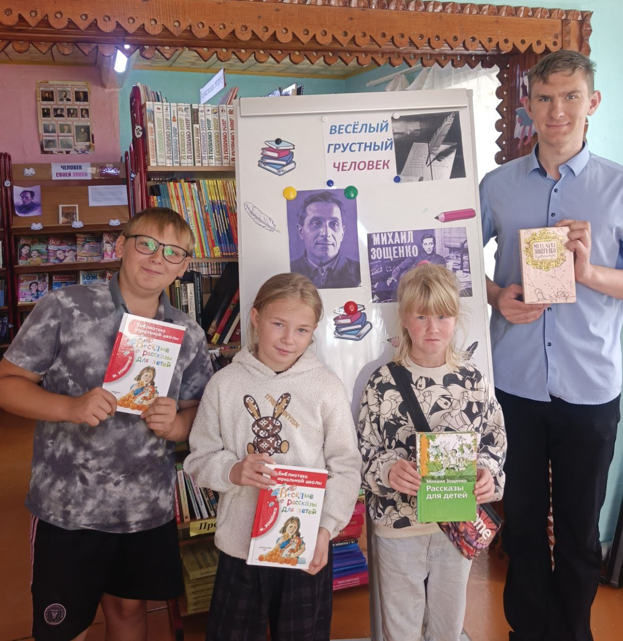 В дань уважения писателя, 29 августа в Старозаимской сельской библиотеке прошёл литературный час по творчеству М. Зощенко «Весёлый грустный человек». Библиотекарь рассказал ребятам об истории становления Михаила Михайловича как писателя, какой жизненный путь он прошёл и какие произведения он писал. Дети узнали много нового про своего теперь любимого писателя. Многие заинтересовались и решили прочитать произведения М. Зощенко.
